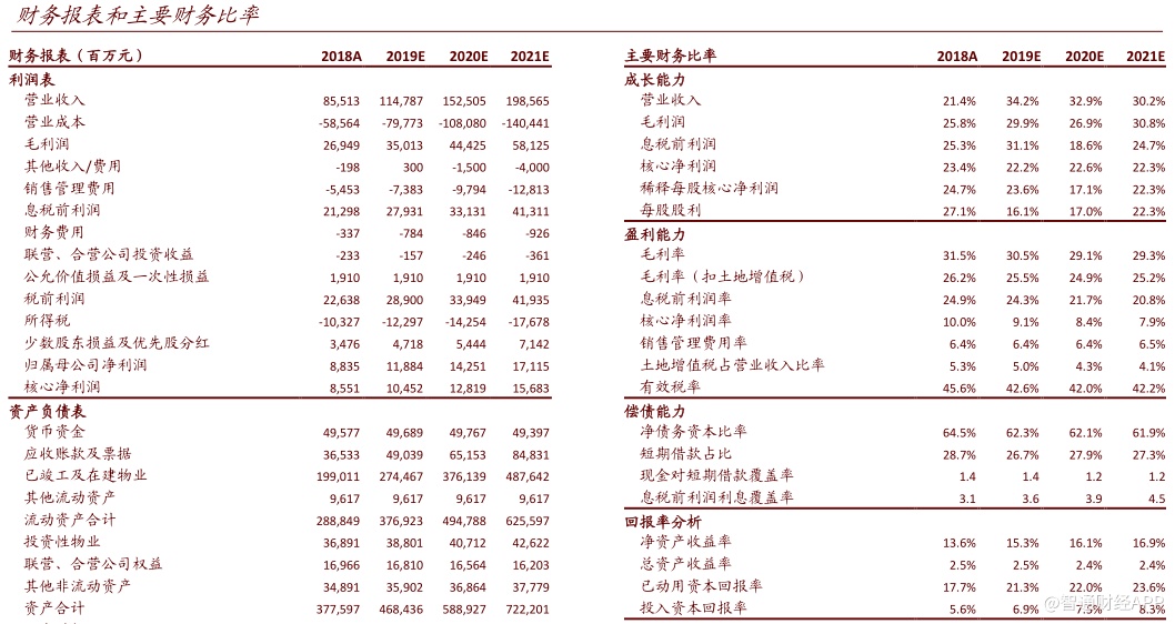 销售有望稳健增长。2019年销售额同比增长48%至2600亿元,在2014年之后首次进入全国前十(第9名,2018年为第11名)。我们认为公司充足的可售资源(2019上半年末为1万亿元)能够支撑销售在2020-21年实现20%左右的增长。我们认为当前土储的成本合理(2019上半年末平均土地成本约为销售均价的30%),能够使2020-21年的销售毛利率维持在28%左右。