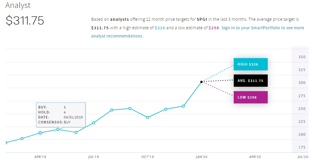 基于过去三个月内10位包括摩根大通和摩根士丹利的分析师给出的建议,标普全球的平均评级为“强烈推荐”,平均目标价为311.75美元。最高目标价为328美元,最低目标价为298美元。截止至2月5日美股收盘,标普全球股价为297.92美元。