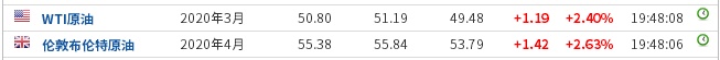 有消息称,石油输出国组织(OPEC)及盟友正在考虑进一步减产,以应对突发公共卫生事件可能对全球石油需求造成的挤压,该消息提振了油价。截止发稿,WTI原油涨2.40%,报50.80美元/桶。布伦特原油涨2.63%,报55.38美元/桶。