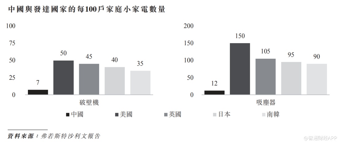弗若斯特沙利文报告显示,中国每100户家庭吸尘器的保有量是12台,远远低于美、英、日、韩等发达国家的普及率。