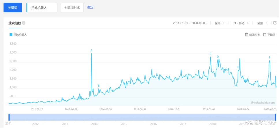 根据中怡康发布的行业数据,2019年上半年,国内扫地机器人市场零售额较去年同期下降9.2%。根据奥维云网数据,2019年扫地机器人行业增速明显有所放缓,1-10月累计零售量和零售额增速分别降至6%和5%。另据百度搜索指数,扫地机器人近两年的关注度有较为明显下降,只在双十一前后关注度才会突然提升。