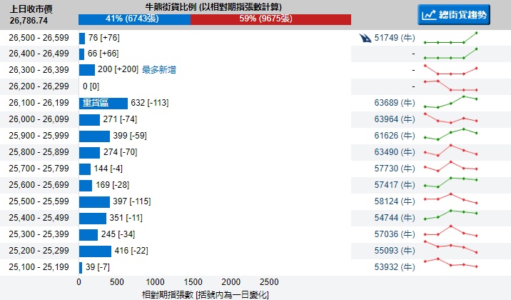 牛证街货重货区在26100-26199区间,该区间最新牛证数量为632张,较上一交易日减少113张。最多新增在26300-26399区间,该区间最新牛证数量为200张,较上一交易日增加200张。