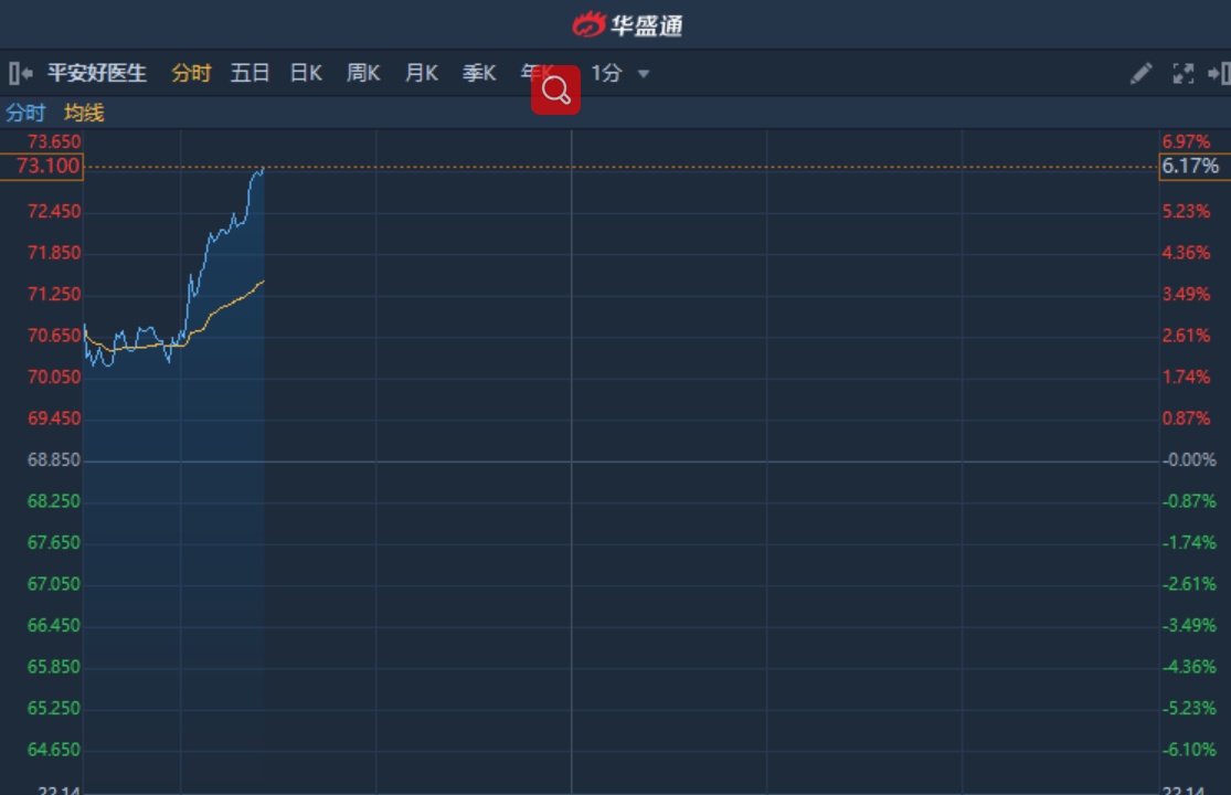 智通财经APP获悉,互联网医疗持续获资金热捧,平安好医生(01833)延续升势,截至10时24分,涨6.1%,报价73.05港元,成交额2.066亿。