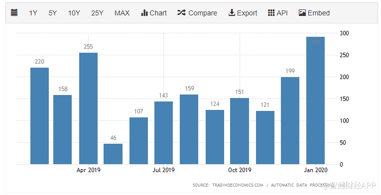 对此,有研究机构指出,两次数据出现背离,主要原因在于通用汽车(GM.US)的罢工事件。数据显示,通用汽车罢工从2019年9月16日开始,10月26日签署了新的劳资协议,罢工人数接近5万人。而在11月份,ADP数据没有把这部分员工数据统计在内,而是统计在12月内,因此表现出明显的差异。