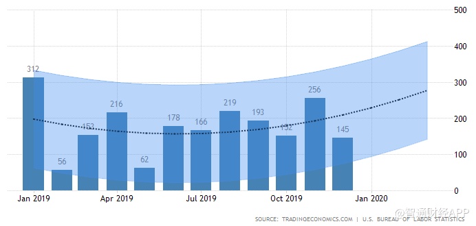 此前美国12月季调后非农就业人口新增14.5万,不及市场预期的增加16万,且跌至去年5月以来新低。市场人士曾解读称:“美国12月非农就业人数略低于市场预期,主要受到制造业岗位意外下滑的拖累,尽管失业率仍然维持在3.5%低位,这一数据报告仍被解读为不尽如人意,尤其是美国本土制造业就业疲软的状况再度凸显了其经济结构失衡的软肋,可能为美联储此后维持宽松力度提供口实。”