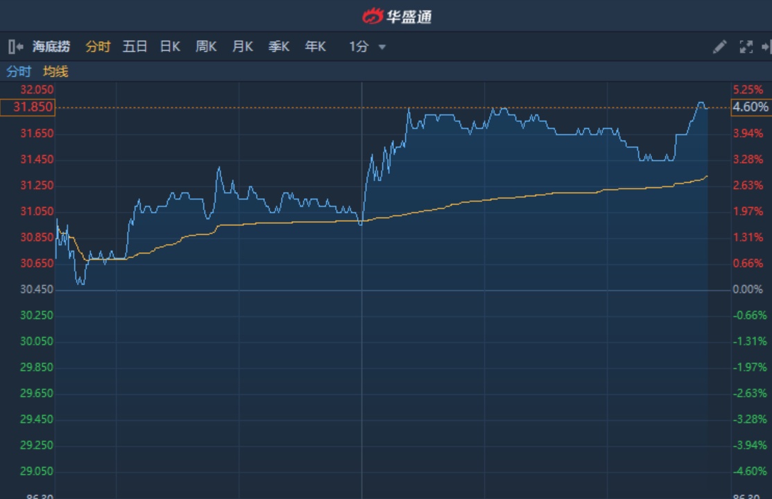 港股异动︱尾盘现一宗大手成交涉资1259万港元 海底捞(06862)现涨4.6%