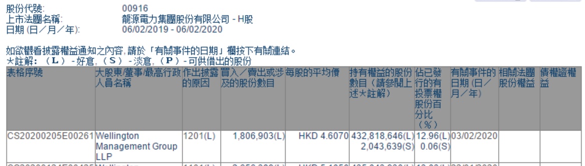 智通财经APP获悉,联交所最新资料显示,2月3日,威灵顿管理公司减持龙源电力(00916)180.69万股,每股作价4.6港元,总金额约为831.17万港元。减持后最新持股数目约为4.32亿股,最新持股比例为12.96%。
