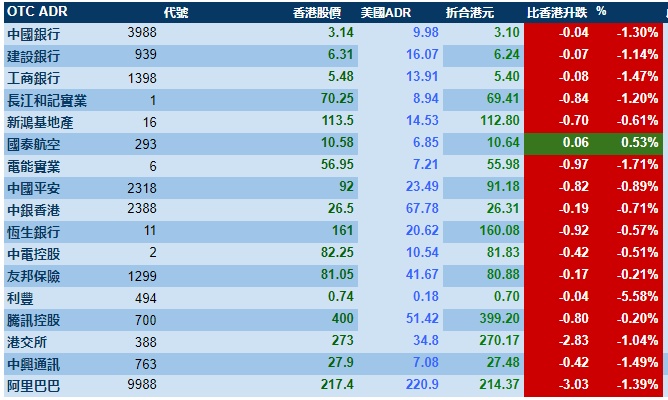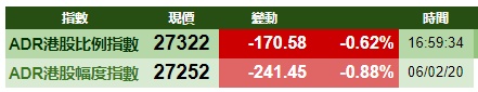 智通财经APP获悉,周四,美股创历史新高,港股ADR指数则小幅下跌,按比例计算,收报27322点,跌170.58点或0.62%。