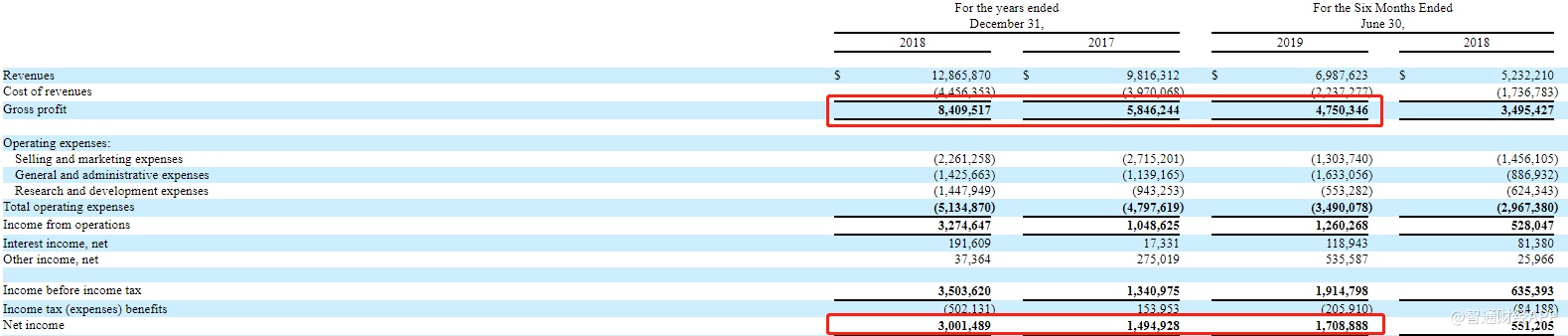 财务方面,2017年和2018年,公司的总营收分别为981.6万美元和1286.6万美元。截至2019年6月30日六个月内,公司的营收为698.8万美元,同比增长34%。同期,公司的净利润分别为149.5万、300.1万、170.9万美元。