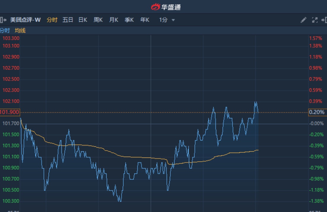 智通财经APP获悉,美团点评-W(03690)午后现两宗大手成交,每股作价100.85元及100.95元,共涉及108.69万股,共涉资1.1亿元。截至15时02分,涨0.2%,报价101.9港元,成交额17.17亿。