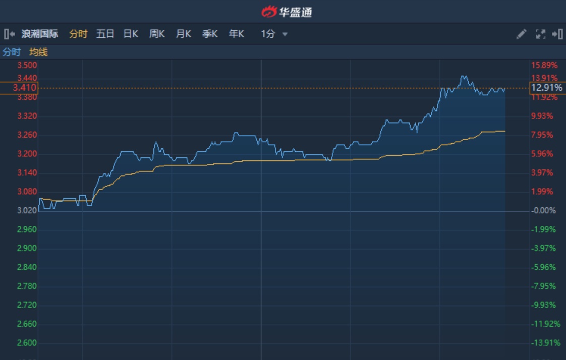 智通财经APP获悉,浪潮国际(00596)免费开放三项云服务,助力不同行业实现在家办公。该股暂现六连阳,累计涨幅超22%,截至15时44分,涨12.91%,报价3.41港元,成交额2895万。