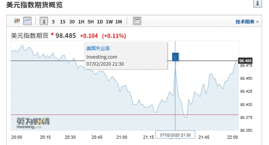 数据公布后,黄金期货出现明显上涨,每盎司超过了1570美元。美元指数期货也出现明显反弹,截止至22:02,涨0.11%,报价98.49美元。