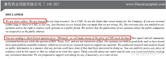 在洋洋洒洒41页的沽空报告中,杀人鲸仍然不得不在最后的免责声明中指出“如果康哲药业下跌,我们将获利”。这正诠释了沽空机构一贯的套路:发布沽空报告,引发投资者恐慌性抛售,然后在快速赚取一大笔钱后走人。