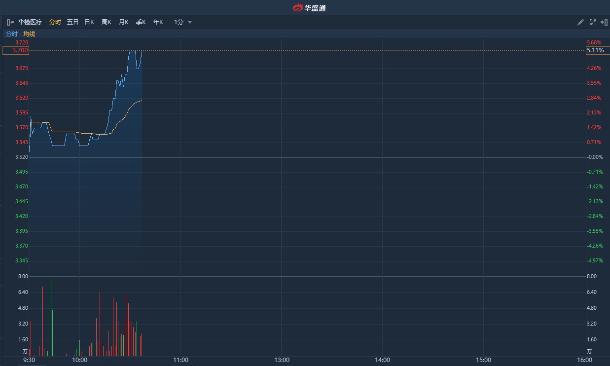 港股异动 | 华检医疗(01931)盘中涨逾5%创历史新高 较招股价高超两成