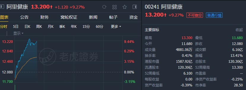 该行表示,维持阿里健康“买入”评级,目标价14港元。