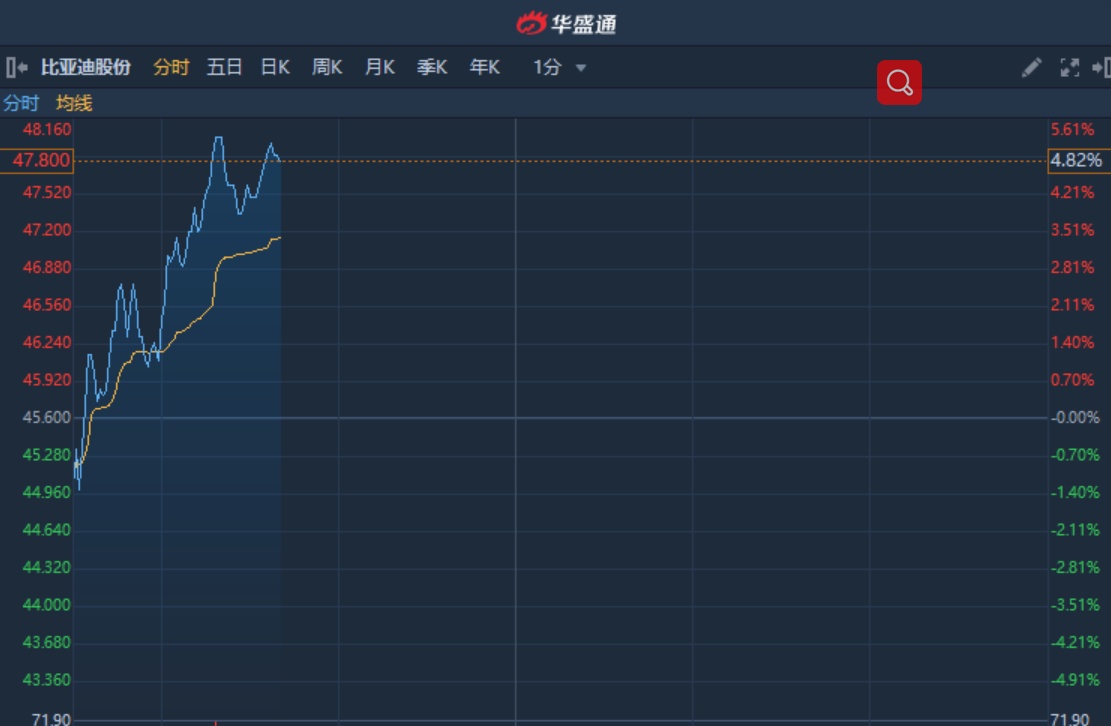 智通财经APP获悉,比亚迪股份(01211)近期获花旗上调目标价至80港元,维持“买入”评级。该股延续升势,截至10时24分,涨5.37%,报价4.32港元,成交额1746万。