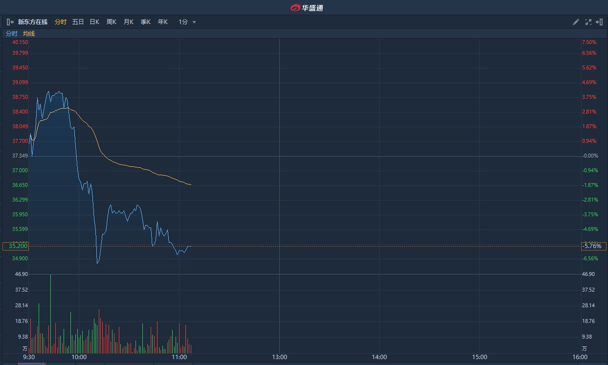 智通财经APP获悉,新东方在线(01797)股价近期强势攀升,年初至今累计涨幅超一倍。近日盘中一度涨逾4%,随后获利盘涌现,股价由升转跌,截至发稿,跌5.76%,报35.2港元,成交额3.5亿港元。