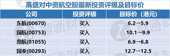 智通财经APP获悉,高盛发布报告报告称,对中资航空股最新投资评级及目标价如下表: