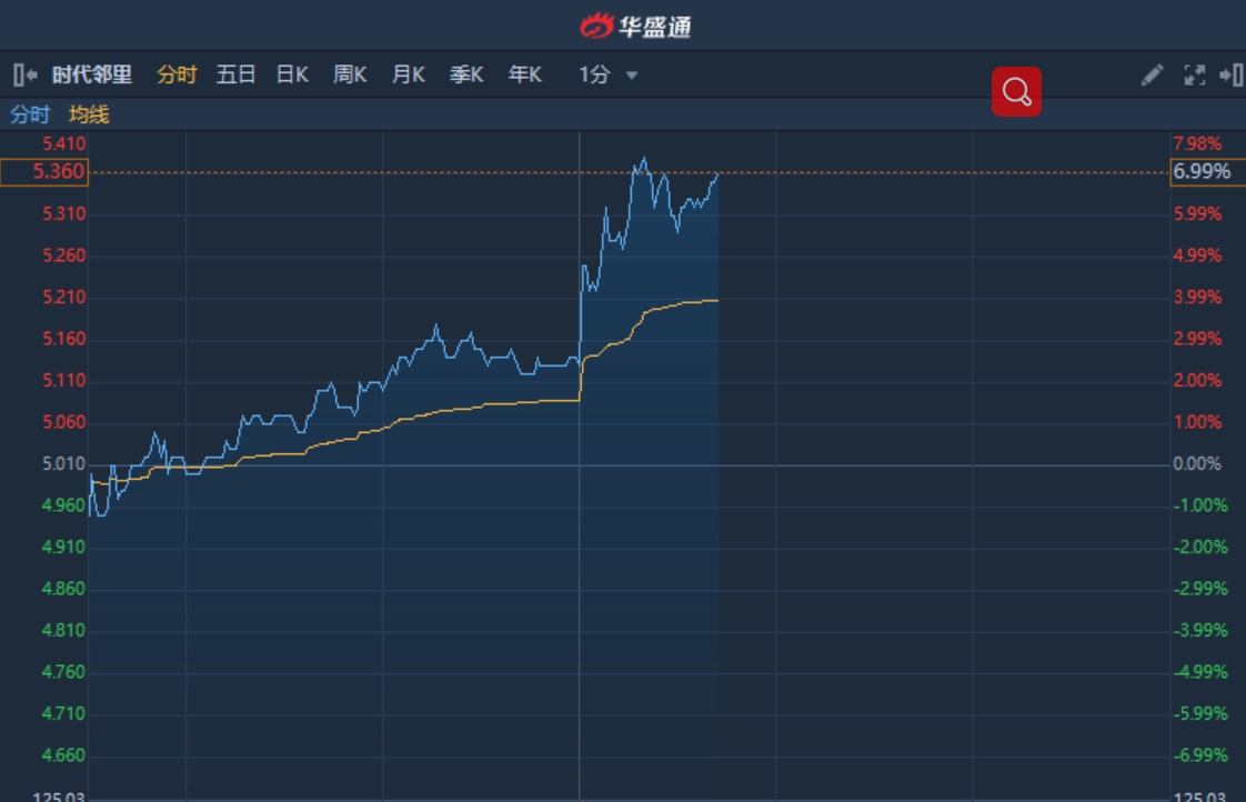 智通财经APP获悉,时代邻里(09928)发盈喜,年度净利同比预增逾80%。该股午后直线拉涨逾7%,截至13时43分,涨6.99%,报价5.36港元,成交额4124万。