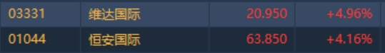 智通财经APP获悉,维达国际(03331)及恒安国际(01044)股价连续上扬,恒安国际暂领涨蓝筹,截至14时18分,维达国际(03331)涨4.96%,报价20.95港元,恒安国际(01044)涨4.16%,报63.85港元。