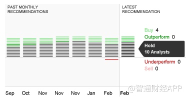 从评级来看,分析师们对公司Q4业绩表现偏向保守。在接受调查的14位投资分析师中,仅有4位分析师给予“买入”评级,另外10位分析师给予“持有”评级。