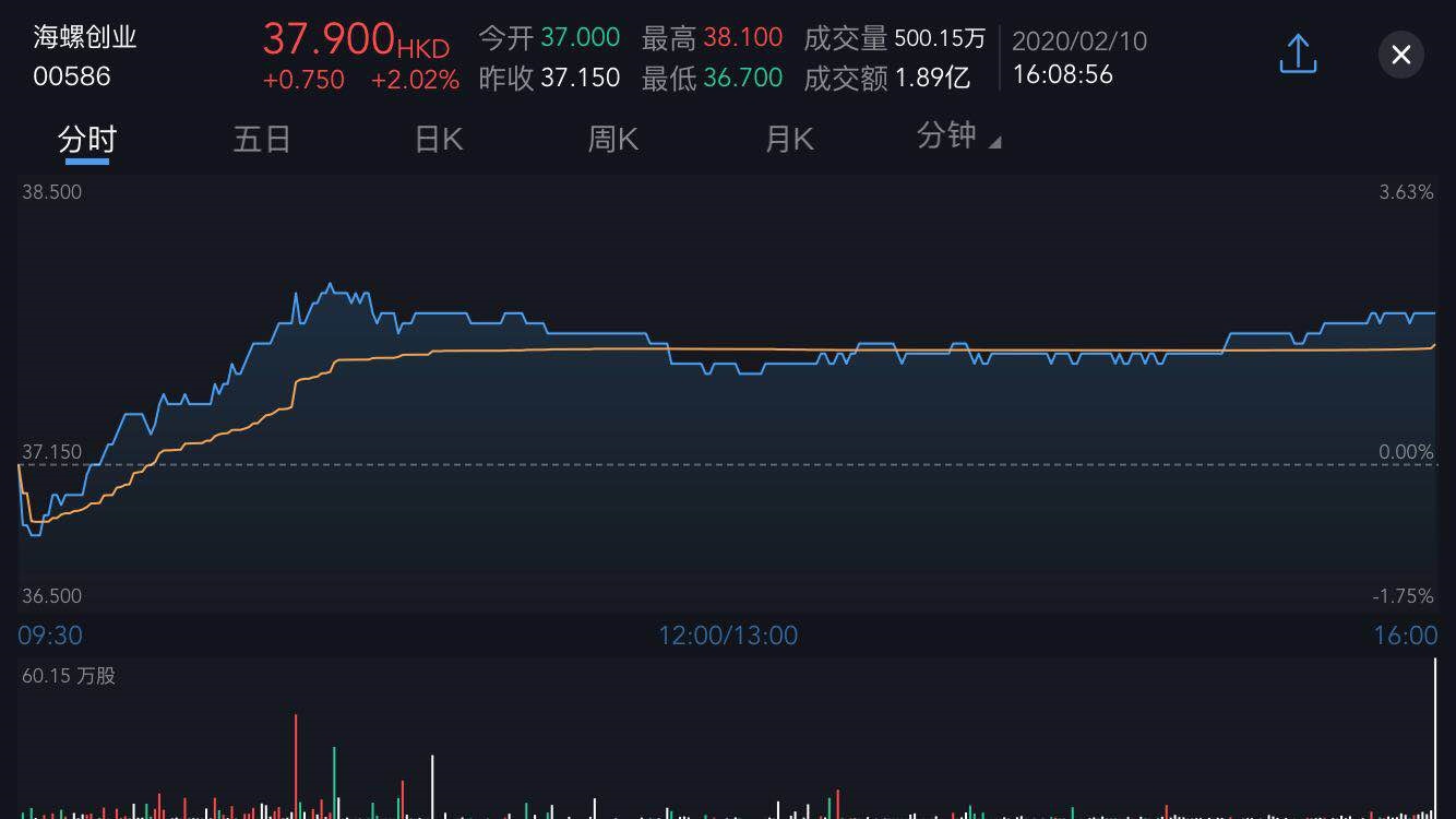 截至今日收盘,海螺创业(00586)涨1.83%,报8.33港元。
