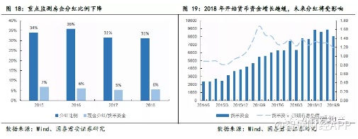 在有息负债被限制情况下,房企可能会减少分红。由于房企结算滞后于销售回款1-2年,相比于净利润,房企现金分红与货币资金比例较为稳定,房企在现金流压力较大的情况下,将会减少分红满足流动性需求。从重点监测房企看,融资收紧导致房企现金流趋紧,货币资金对短期有息负债的覆盖比降至1.19,预计房企可能会采取降低分红应对缩表。
