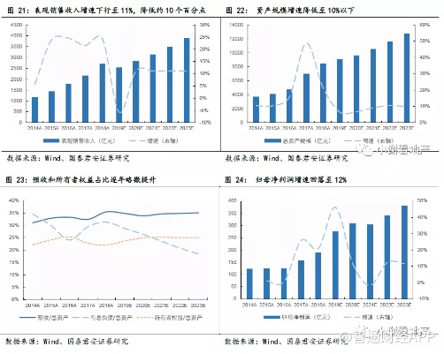 保持资产负债率不变为78%,则保利可维持20.2%的销售增速。资产负债率则有息负债增速略低于保持剔除预收负债率不变情形,销售增速达到20.2%,总资产规模增速到达约为17%,规模净利润增速达到20%。