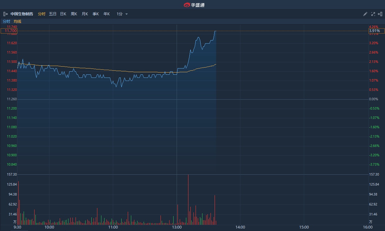 智通财经APP获悉,中国生物制药(01177)午间发布公告,由公司附属公司正大天晴药业集团股份有限公司开发的治疗乳腺癌药物“氟维司群注射液”已分别获美国食品药品监督管理局(FDA)的新药简略申请(ANDA)批准,以及德国联邦药物和医疗器械管理局(BfArM)的药品上市许可。该股午后直线拉升,截至发稿,涨3.91%,报11.7港元,成交额3.24亿港元。
