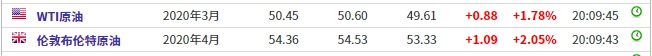 截至发稿,WTI原油涨%,报50.45美元/桶。布伦特原油涨2.05%,报54。36美元/桶。