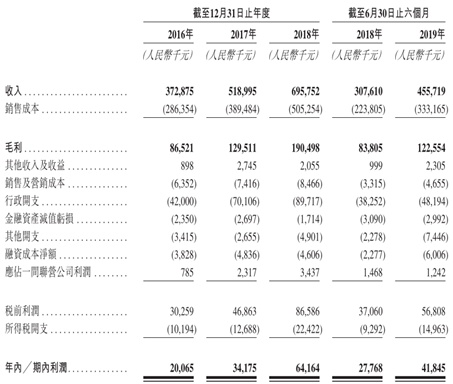 毛利率水平下滑叠加利润增速放缓,引发了市场较大的担忧。智通财经APP了解到,公司于2016-2018年实现年度营业收入分别为3.73亿元人民币(单位下同)、5.19亿元、6.96亿元,年复合增速为36.6%;实现净利润0.2亿元、0.34亿元、0.64亿元,年复合增速为78.8%;不过2019年上半年公司营收在同比增长48.15%的基础上,毛利实现1.23亿元,46.23%的同比增幅低于营收增长,毛利率水平由过去三年的连年提升转为同比下滑0.3个百分点至26.9%,50.7%的净利润同比增速也大幅低于2017年、2018年的70%、88.24%。