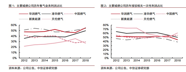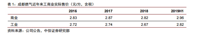 近期各地下调的主要是最高限价,下调后气价通常仍高于大用户的实际气价。以数据较全面的成都为例,本次气价从3.36元/方下调为3.02元/方,但成都燃气1H19工业/商业平均售价分别仅为2.96/2.82元/方,大用户售价进一步低于该平均售价。可见若成都对大用户亦降价(本次仅针对中小用户),并不会导致大用户减收。
