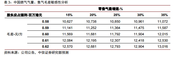 以中国燃气为例,气量、毛差小幅波动对业绩影响有限我们对中国燃气 FY2021 业绩进行敏感性分析。根据我们的分析结果,公司毛差每变动 0.01 元/方,FY2021 盈利预测变动 3%;公司气量增速每变动 5 个百分点,FY2021 盈利预测变动 1%。