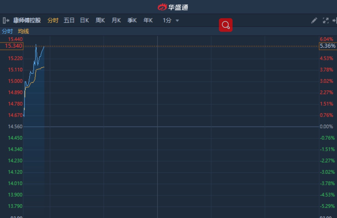 智通财经APP获悉,康师傅控股(00322)获大和上调目标价18%至15.6港元,评级升至“跑赢大市”,截至9时52分,涨5.36%,报价15.34港元,成交额7765万。