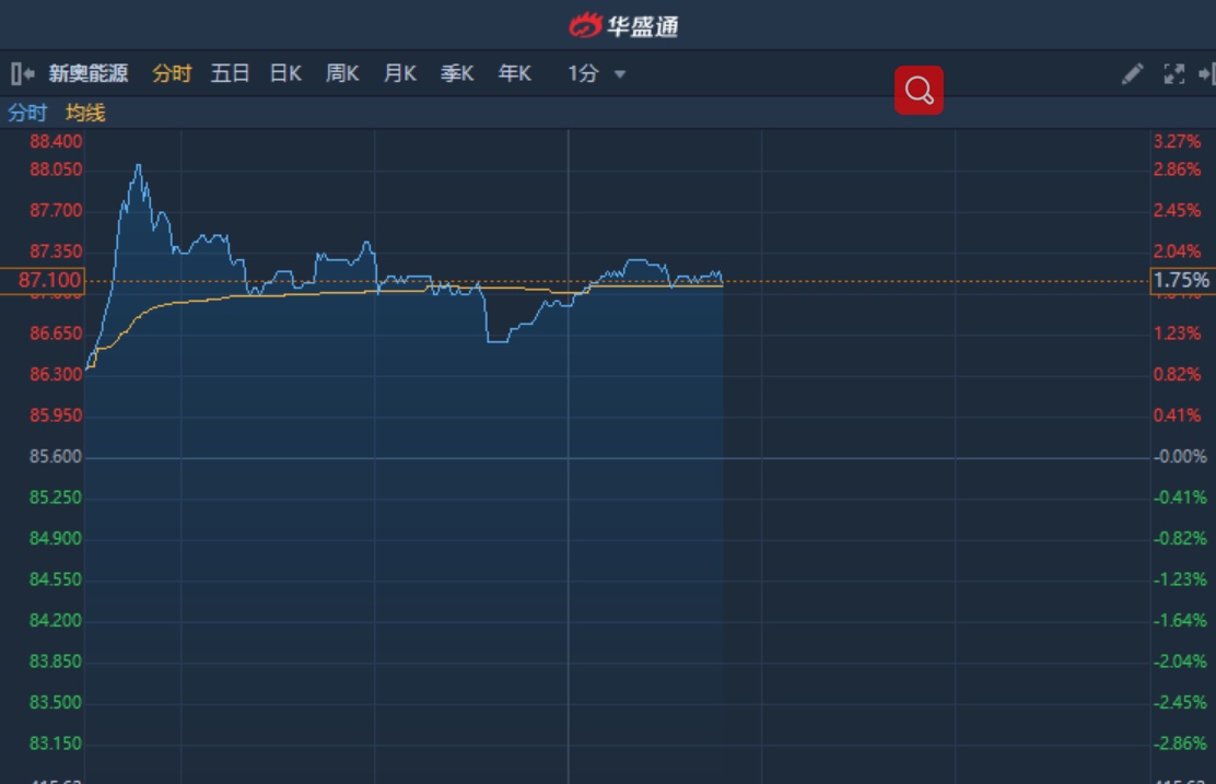 智通财经APP获悉,新奥能源(02688)午后现3宗大手成交,每股作价86.925元,共涉及441.42万股,共涉资3.84亿元。截至13时47分,涨1.75%,报价87.1港元,成交额5.828亿。