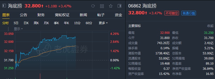 智通财经APP获悉,中信建投证券发布报告称,海底捞(06862)当前股价对应2020、2021年PE为54、30倍,预计海底捞门店长期稳定后合理估值约40倍,近两年仍享受一定估值溢价,约支撑60-65倍估值,当前位置股价具有底部韧性,维持其“买入”评级,目标价格6个月为42港元。