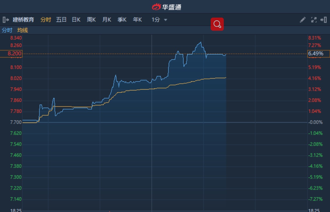 智通财经APP获悉,次新股建桥教育(01525)超额配股权获悉数行使,将发行1500万股。截至14时25分,涨6.49%,报价8.2港元,成交额1535万。值得注意的是,该股盘中高见8.29港元,刷新上市新高。