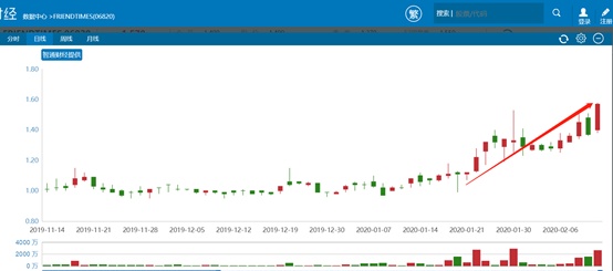 此背景下,friendtimes股价从1月22日起迎来第二波升势,公司在随后的14个交易日里,在2亿港元资金推动下累计涨幅超过了40%,截止2月12日收盘公司股价定格在了1.57港元。在公开资本市场历时近4个月后,终于站在了发行价之上,完成了深V走势的华丽反转。