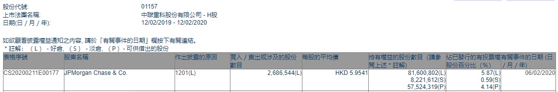 智通财经APP获悉,联交所最新资料显示,2月6日,摩根大通减持中联重科(01157)约268.65万股,每股作价5.95港元,总金额约为1598.5万港元,减持后最新持股数目约为8160.1万股,最新持股比例为5.87%。