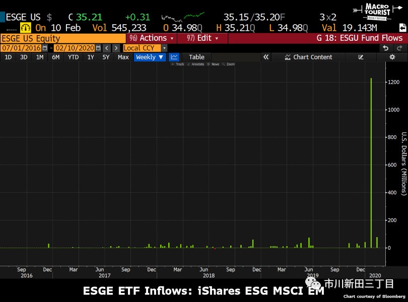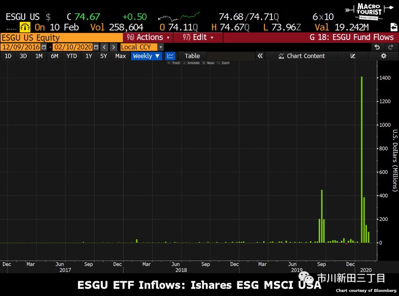 在2019年第四季度里资金大量涌入以ESG为投资主题的交易所交易基金,该主题当前火得一塌糊涂,风头一时无两。