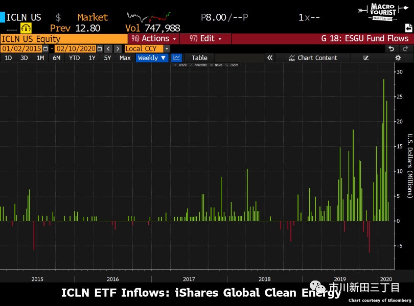 如果有人不相信拉里·芬克对ESG理念的投资即将爆发性增长的看法,就请通过以下几张图看看最近一段时期以来资金流入E.S.G. 主题投资的交易所交易基金的情况: