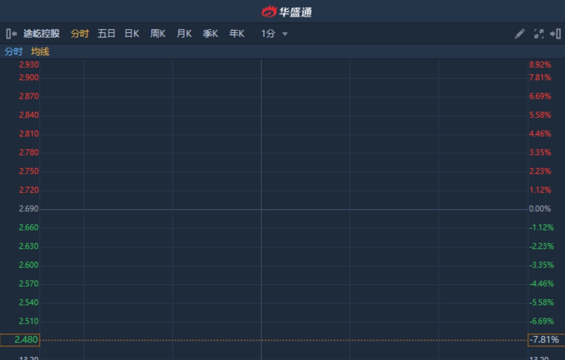 智通财经APP获悉,途屹控股(01701)遭港证监点名股权高度集中,受消息拖累,早盘股价受挫,截至9时20分,跌7.81%,报价2.48港元,成交额32.73万。