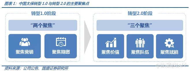 中国太保在2011年及2017年分别推动实施转型1.0和转型2.0,两次转型前后相承,转型1.0奠定公司价值发展的基础,转型2.0在前期基础上,通过队伍升级、服务增值、科技赋能,进入新的发展周期,立志成为寿险业健康稳定发展的引领者。