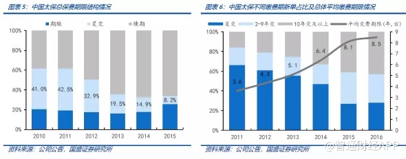转型1.0在优化渠道结构的同时也在优化整体产品的期限结构,太保主渠道一直坚持以期缴业务为主,续期保费占比逐步提升,平均交费期限由2011年的3.6年提升到2016年的8.5年,总保费中趸交占比也由11年的42.5%下降至15年的8.2%,续期及期缴占比明显提升,奠定公司长期发展的基础。