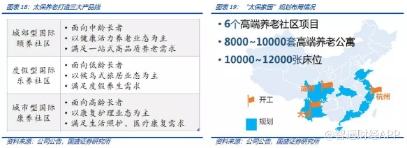 养老服务对接寿险主业,逐步形成大型公司竞争壁垒:当前行业竞争格局较为激烈,保险公司在产品设计方面很难形成优势,而中小公司在价格方面整体低于大型险企。养老服务对长期资金的需求量大,一方面可以在长周期实现较高的回报率,另一方面能够有效对接寿险主业,形成大型险企的竞争优势。太保养老计划与寿险协同打造“保险产品+高端养老社区+优质专业服务”模式,通过对寿险保单达到一定标准的客户提供入住权益、年金产品提供转换为床位费或租金抵扣的新型领取方式、长护险及健康险理赔对接等模式,助力寿险主业发展。19年开门红期间,三个月公司累计发放养老社区入住资格接近5000份,对应新单保费达14.02亿元。