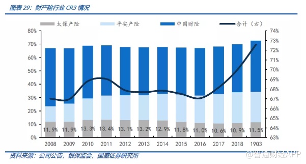 财险业务稳居行业第一梯队,18年以来市占率明显提升:财产险行业一直以来表现出较为明显的规模效应,大型财险公司在分支机构布局、渠道把控、服务及理赔效率等方面具备显著优势,从而能够有效降低成本形成优势。行业CR3持续保持在65%以上,太保产险一直以来处于行业的第一梯队,市占率维持在10%以上,18年以来占比有较为明显提升。