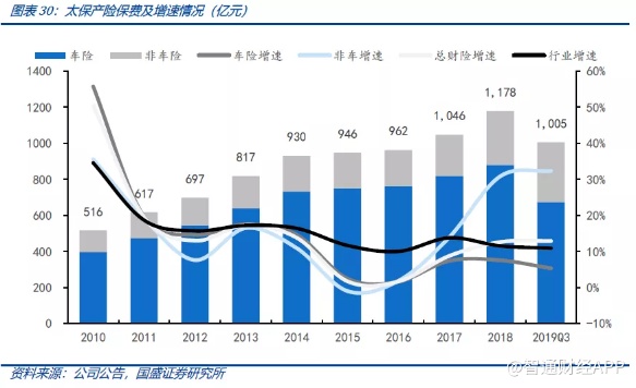 车险业务行业增速逐步下滑,公司注重续保及服务品质:车险行业保费增速近年来逐步下滑,18、19两年行业保费增速分别为4.2%、4.5%,一方面由于我国机动车保有量持续的低个位数增长,汽车销量整体同比持续的负增长,另一方面商车费改不断推进,保险公司对车险保费定价权更大,竞争之下整体车均保费有较为明显的下降。当前三期费改已于18年上半年放开广西、青海及陕西三地试点,完全放开自主系数范围,20年下半年有望全面推进三次费改。在此背景下行业竞争将更加激烈,同时预计20年整体行业车险保费仍然维持5%以内的增速。公司在行业增速逐步下滑的背景下,加强续保管理,使得续保成为公司车险保费增速的主要动力,并加强客户服务,提升整体服务品质,车险保费增速优于行业。
