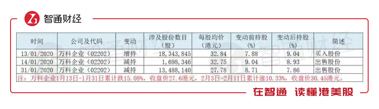 以万科为例,其在1月13日买入1834万股万科,1日14日便开始逐渐卖出,到1月31日,摩根大通持有万科7.86%股权,回到了1月13日增持之前的持股比例。值得一提的是,其减持万科的均价大幅低于此前的增持均价。然而,就在其减持完成后的一个交易日(2月3日)开始,万科强势反弹,至今股价回到31港元的高位。