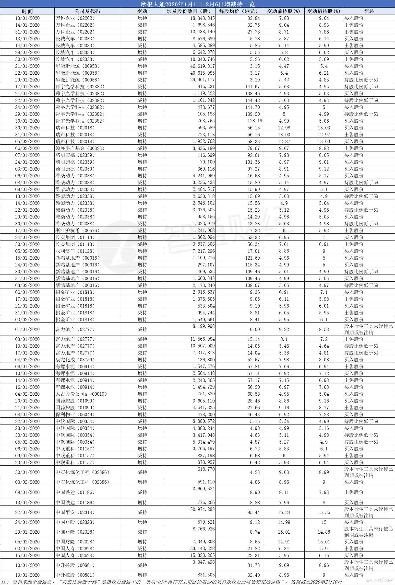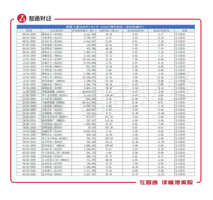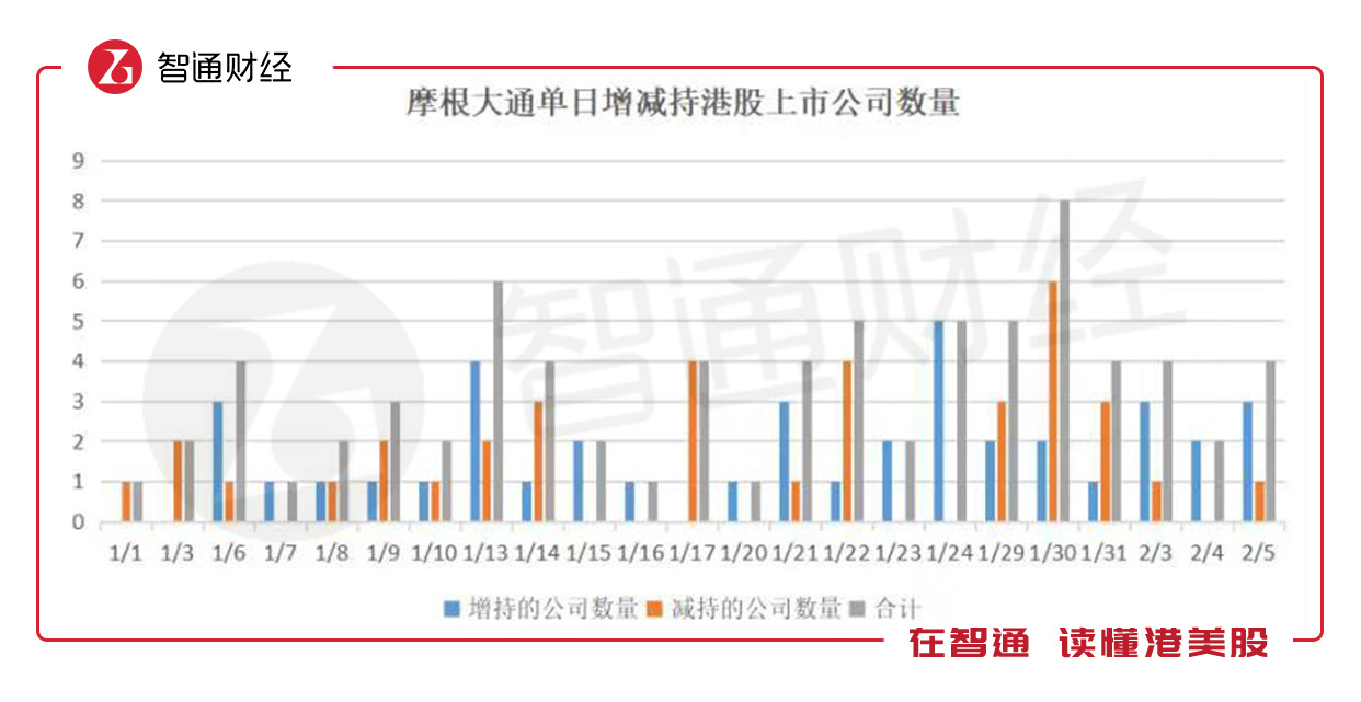 智通财经APP根据联交所披露易统计,2020年1月1日-2020年2月6日,摩根大通共增减持了27个港股上市公司,短短24个交易日内,披露的持仓变化次数77次(实际上的操作次数可能要更多)。