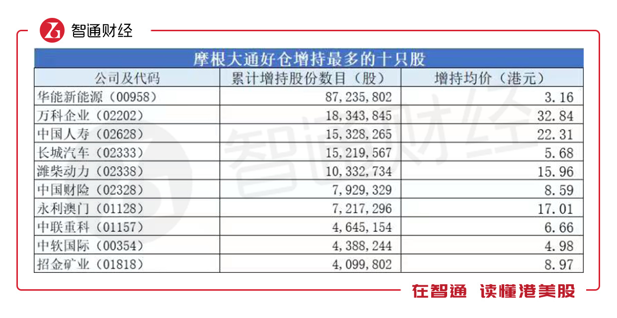统计期内,摩根大通好仓增加最多的股票是华能新能源。